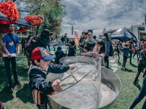 Burbujas de gigantes, técnicas para prensar hojas de árboles, herbarios, demostraciones del funcionamiento de cohetes y telescopios para observar el sol, fueron algunas de las actividades con las que niños y adultos interactuaron para aprender en el festival desarrollado en la Universidad de Concepción. El evento, impulsado por el PAR Explora Biobío junto a la Liga de la Ciencia de la UdeC, contó con 35 stands de diversas organizaciones de estudiantes, centros de investigación, facultades y programas dedicados a las ciencias, además de un escenario principal con un nutrido programa de actividades que fueron desde teatro y charlas, hasta monólogos y música en vivo.