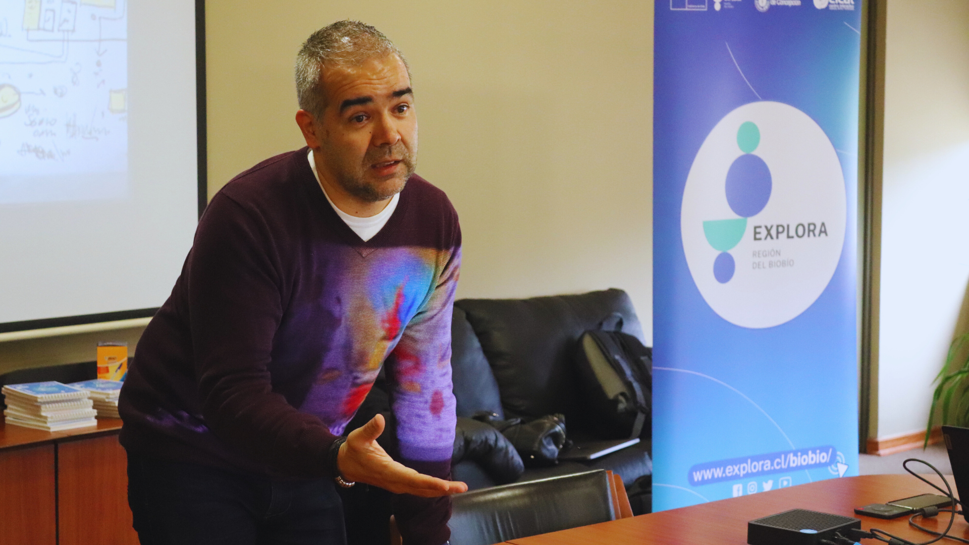La reunión contó también con la participación de Claudio Jiménez Águila, director de Investigación e Innovación de la Facultad de Ciencias Químicas de la Universidad de Concepción y asesor científico de Explora Biobío, quien compartió parte de su experiencia respecto a la difusión y divulgación de las ciencias a diversos públicos, con principal enfoque en las y los estudiantes.