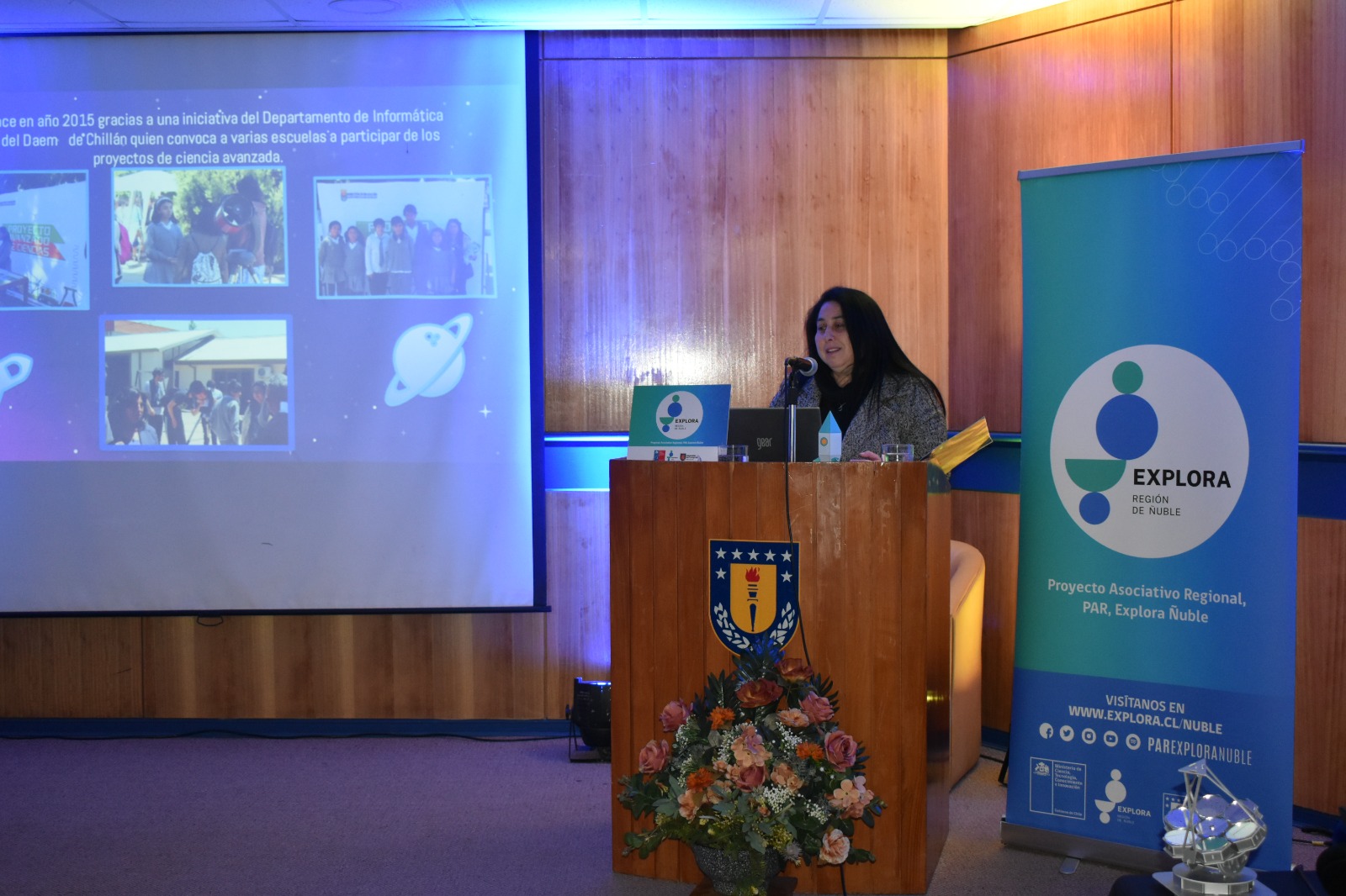 Un atractivo y lúdico encuentro organizado por el equipo de PAR Explora Ñuble, fue realizado en la tarde del miércoles 12 de julio, en el auditorio José Suárez Fanjul, principal espacio del campus Chillán de la Universidad de Concepción. Se destacó la presencia en esta ceremonia de 16 representantes de instituciones asociadas al proyecto, además de una gran cantidad de público, principalmente docentes de establecimientos, académicos y estudiantes universitarios.