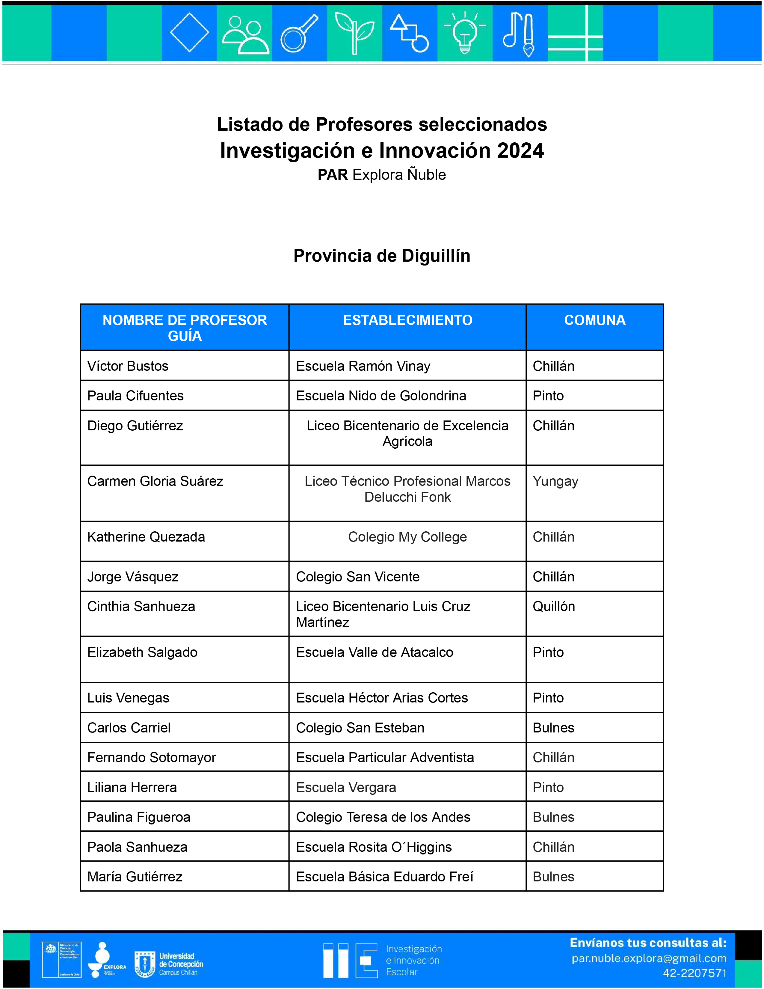 RESULTADOS DE LA CONVOCATORIA IIE 2024 REGIÓN DE ÑUBLE