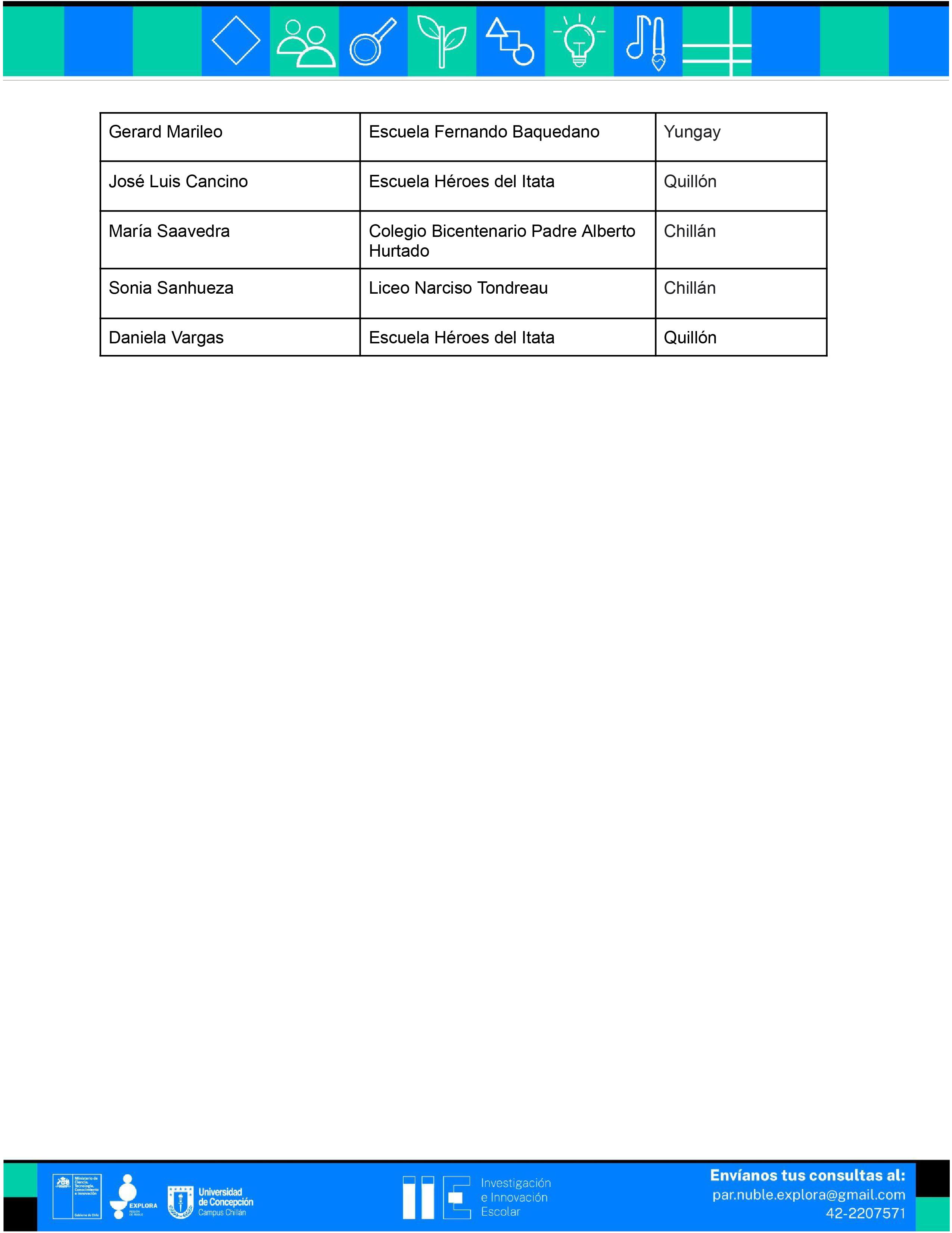 Gracias a todas y todos los participantes por su compromiso y entusiasmo. Juntas y juntos estamos construyendo un futuro más brillante y prometedor para la ciencia y la educación en nuestra querida región de Ñuble.