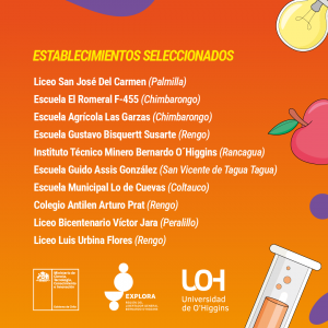 Dejamos con ustedes el listado de los 10 establecimientos educacionales seleccionados por el PAR Explora de la Universidad de O´Higgins en el marco de la iniciativa: “PAR Explora en tu colegio”, la que busca acercar las temáticas STEM a niños, niñas y jóvenes en edad escolar, aportando, además, a la disminución de la brecha de género en sus centros educativos.
