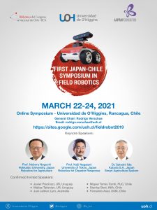 La Universidad de O’Higgins, junto a la Biblioteca del Congreso Nacional y The Japan Foundation, convocan la participación de la comunidad al Primer Simposio Japón-Chile en Robótica de Campo, que se realizará del 22 al 24 de marzo de 2021 de manera online y gratuita.Esta actividad abordará el estado actual de la robótica de campo en Japón y Chile, además de promover la discusión sobre los impactos económicos, sociales y técnicos de esta tecnología, a cargo de un grupo de destacados académicos de Japón, Chile y el extranjero, quienes compartirán sus puntos de vista con la audiencia. Inscríbete aquí