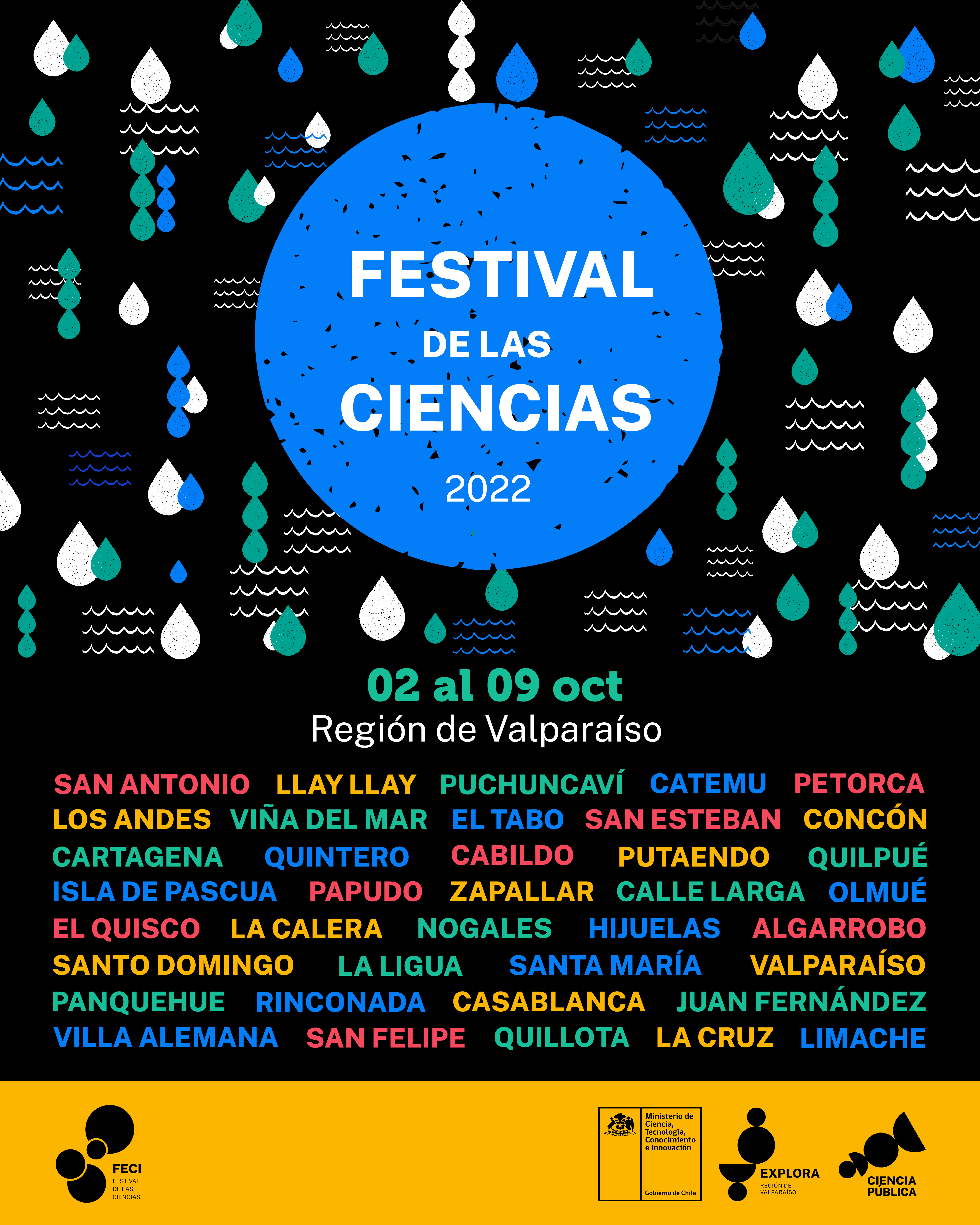Con un marcado énfasis territorial y en presencialidad se celebrará este año el Festival de las Ciencias (FECI), iniciativa liderada por el Ministerio de Ciencia, Tecnología, Conocimiento e Innovación y coordinada en nuestra región por Explora Valparaíso y variadas instituciones; quienes invitan a celebrar la curiosidad y a sentirnos asombrados con el inmenso mundo de las ciencias y el conocimiento. Para este año, la celebración se organizará bajo la temática “Regeneración y cambio climático: agua” como una forma de concientizar sobre la importancia de este recurso para toda la vida en la tierra.