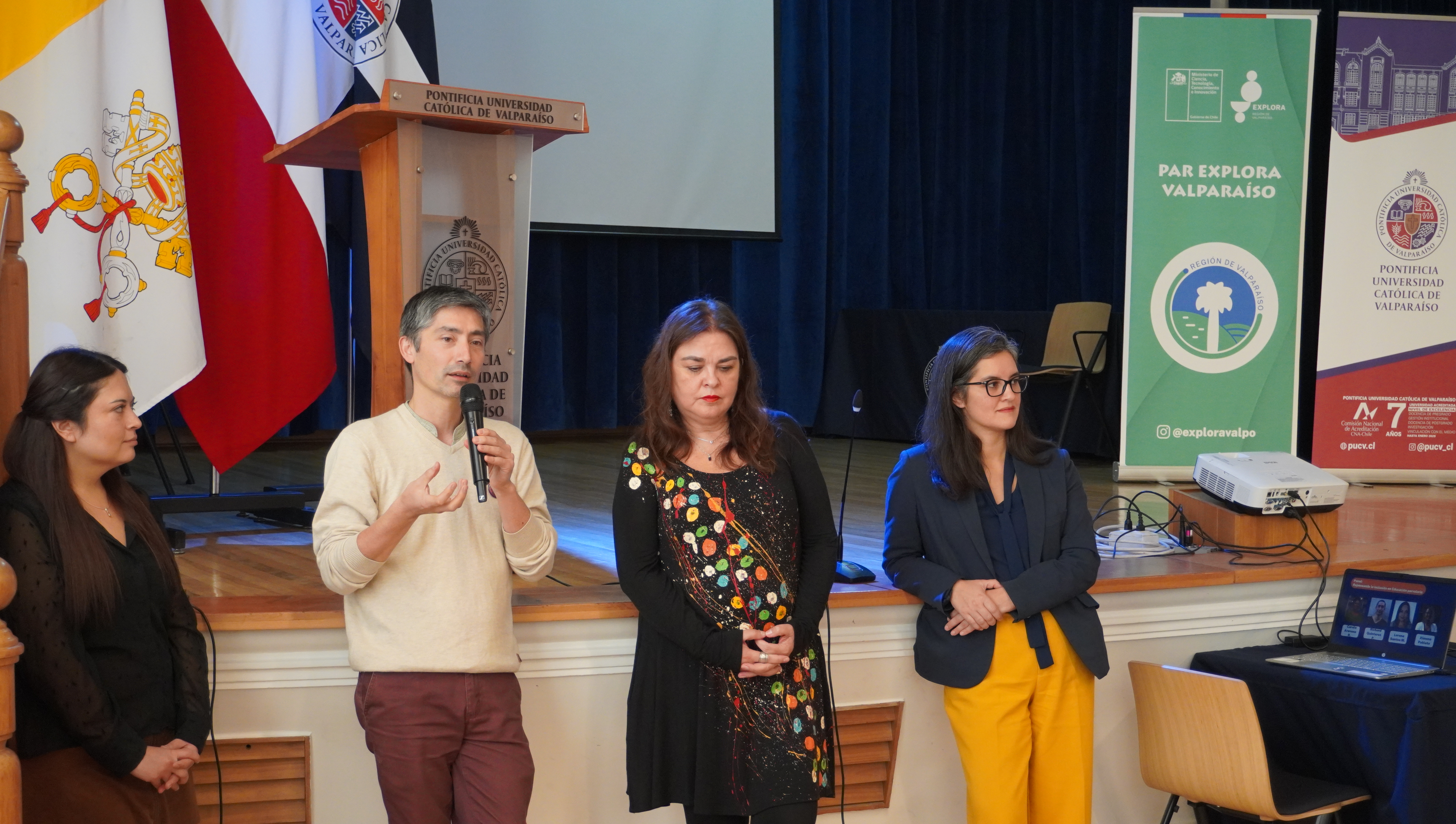 La actividad inaugural contó además con la presencia de David Contreras, Director General de Vinculación con el Medio de la PUCV, Elizabeth Alarcón, Directora regional de JUNJI Valparaíso, Victoria González Coordinadora Territorial de la Fundación Integra y Víctor Salinas, Director de Explora Valparaíso.